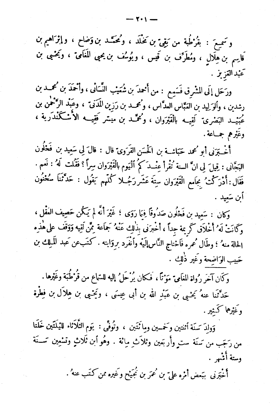 وَرَحَل إلى المشْرِق فَسَمِع: من أحْمد بن شُعيب النَّسَائي، وأحْمَد بن مُحَمَّد بن رشدين، والوليد بن العبَّاس العدَّاس، ومُحَمَّد بن رَزين المدنيّ، وعَبْد الرَّحمن بن عُبَيْد البَصْريّ لَقيه بالقَيْروان، ومُحَمَّد بن ميسّر فَقيه الأسكندرية، وغيرهم جماعة.