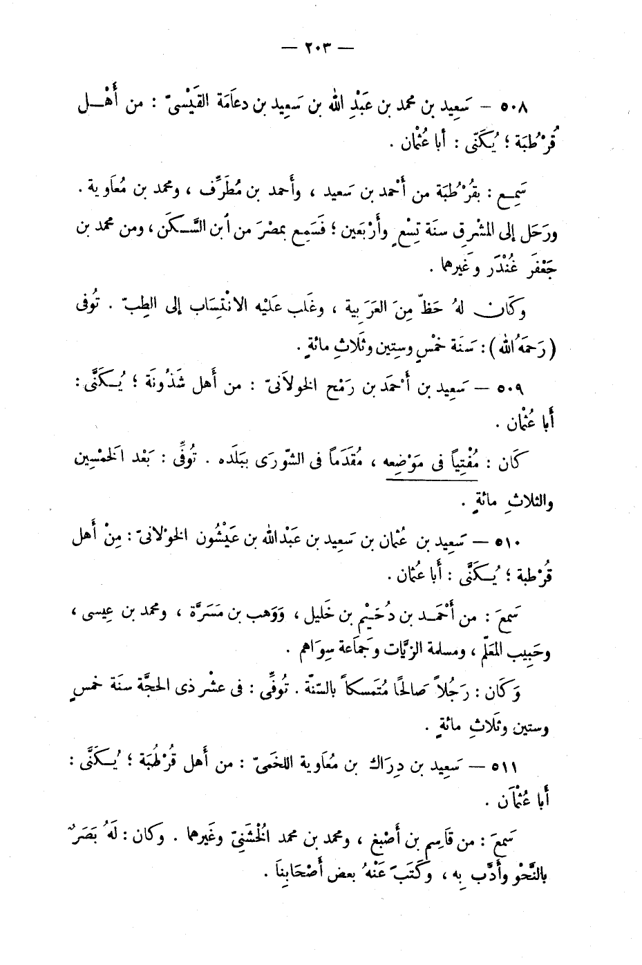 508 - سَعِيد بن مُحَمَّد بي عَبْدالله بن سَعِيد بن دعامة القيسيَّ: من أهْل قُرْطُبَة: يُكَنَّى: أبا عُثْمان.