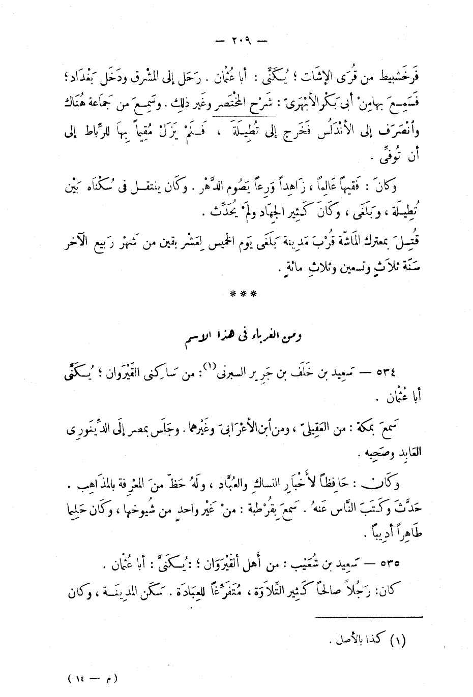 534 - سَعِيد بن خَلَفَ بن جَرير السبرني: من سَاكِني القَيْرَوان؛ يُكَنَّى أبا عُثْمان.