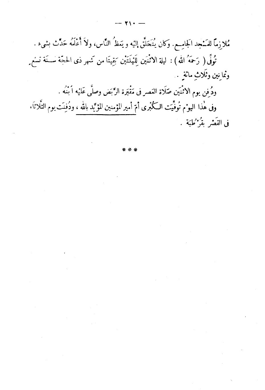 وفي هذا اليوم تُوفِّيت الكُبْرى أمّ أمير المؤمنين المؤيَّد بالله، ودُفِنت يوم الثَّلاثاء في القَصْر بقُرْطُبَة.