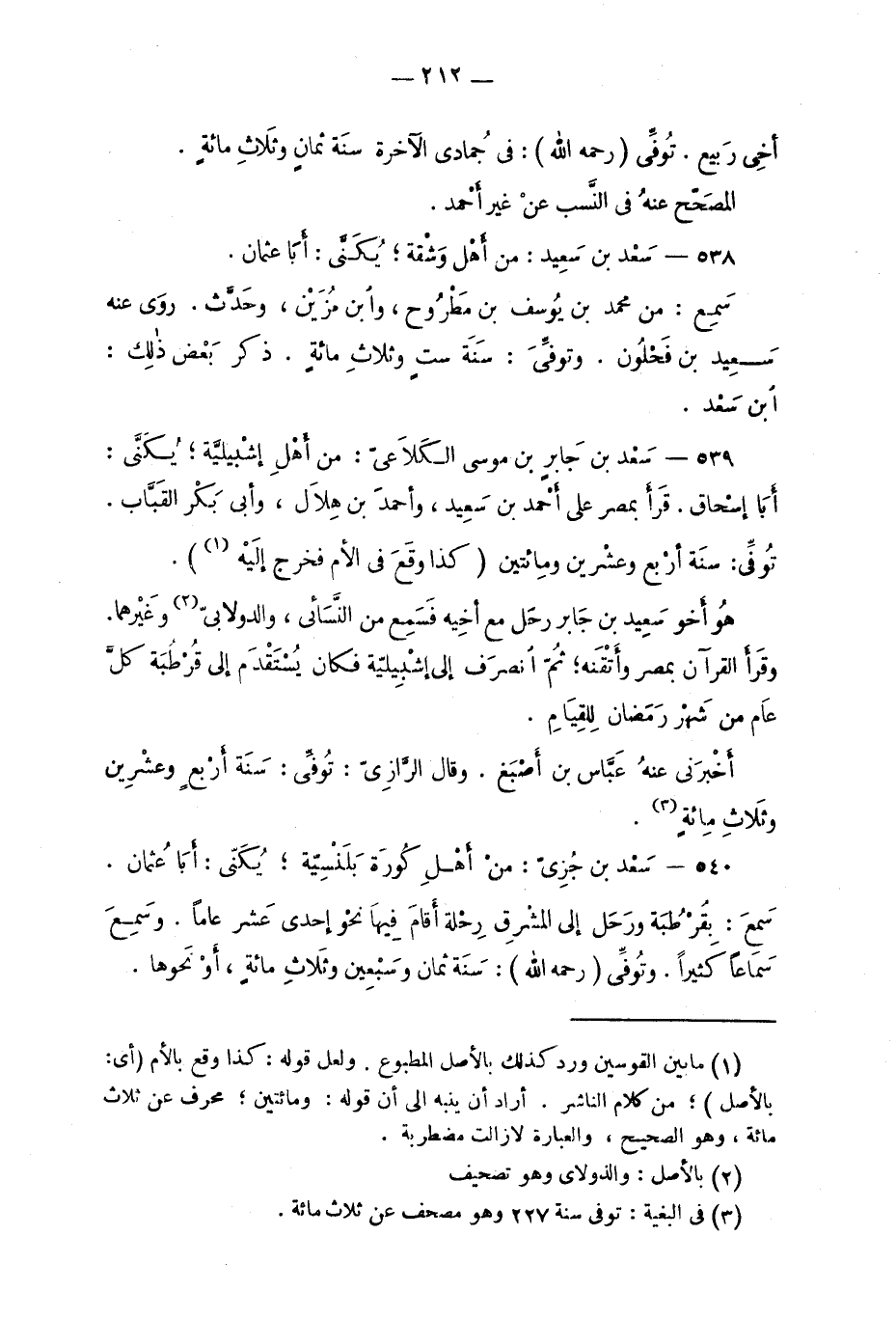 539 - سَعْد بن جابر بن موسى الكَلاَعيّ: من أهْل إشبيليَّة؛ يُكَنَّى: أبا إسحاق. قرأ بمصر على أحْمد بن سَعِيد، وأحمد بن هِلال، وأبي بَكر القبَّاب. تُوفِّي: سنة أربْع وعشرين ومائتين (كذا وقَعَ في الأم فخرج إليه (1 (.