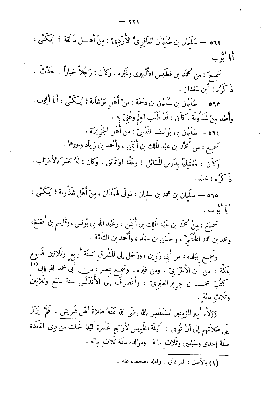 565 - سُلَيْمان بن مُحَمَّد بن سُلَيْمان: مَولَى لَهمدان، مِنْ أهْل شَذُونَة؛ يُكَنَّى: أبا أيوب.