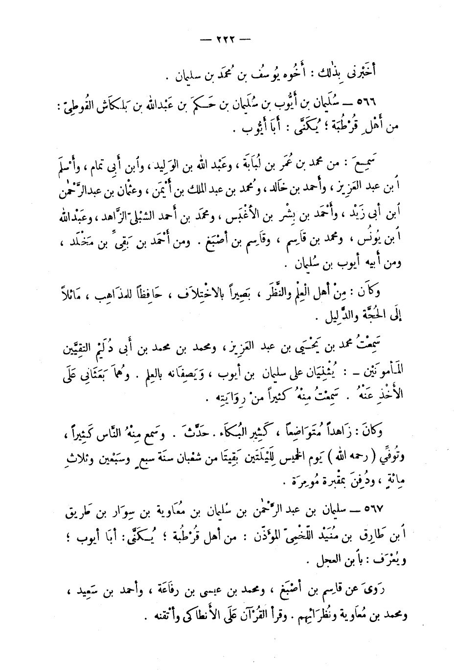 566 - سُلَيْمان بن أيُّوب بن سُليمان بن حَكَم بن عَبْدالله بن بَلكَاش القُوطيّ: مِ، أهْل قُرْطُبَة؛ يُكَنَّى: أبَا أيُّوب.