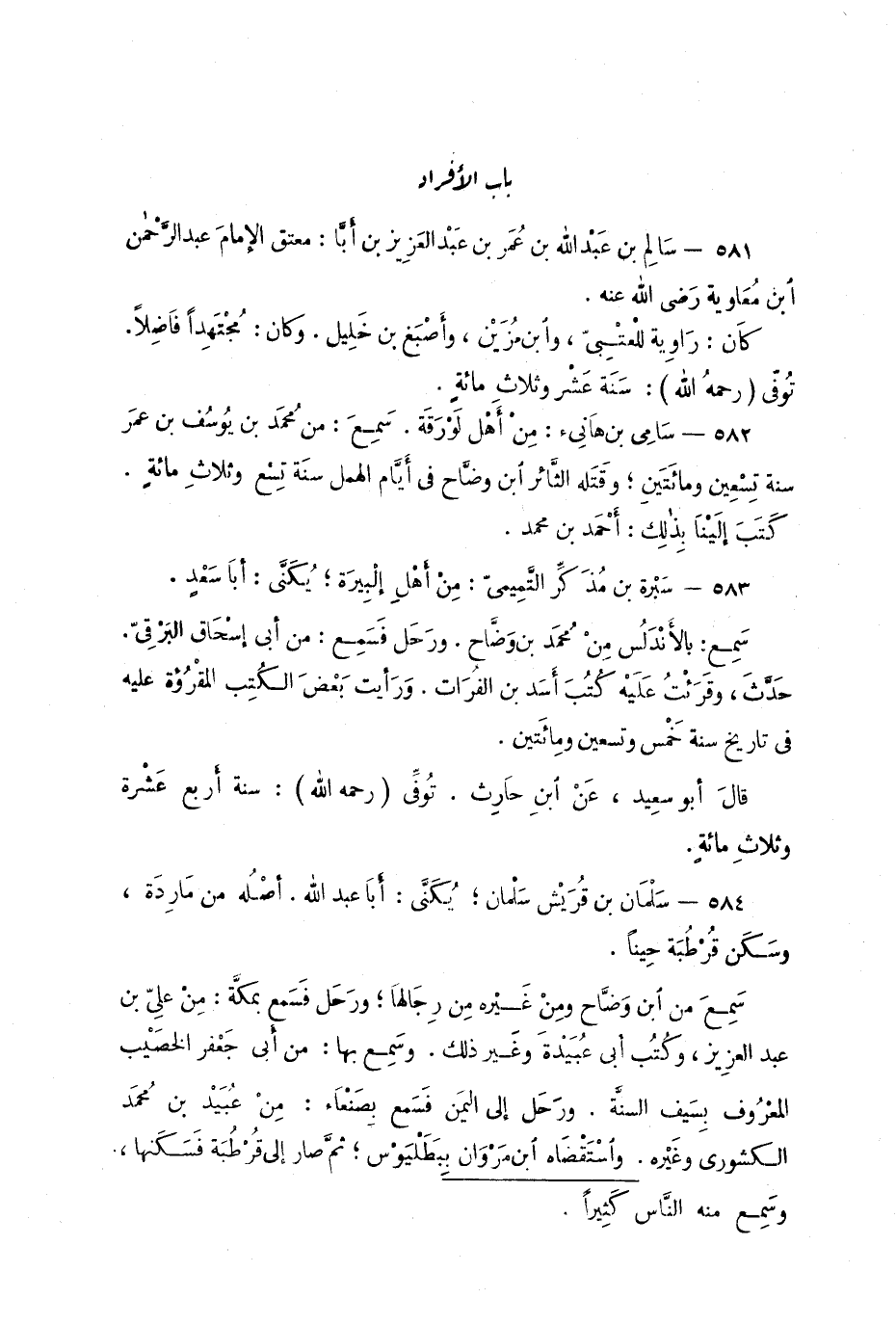 581 - سالِم بن عَبْد الله بن عُمَر بن عَبْد العَزِيز بن أبَّا: معتق الإمامَ عبد الرَّحمن ابن مُعاوية رَضى الله عنه.