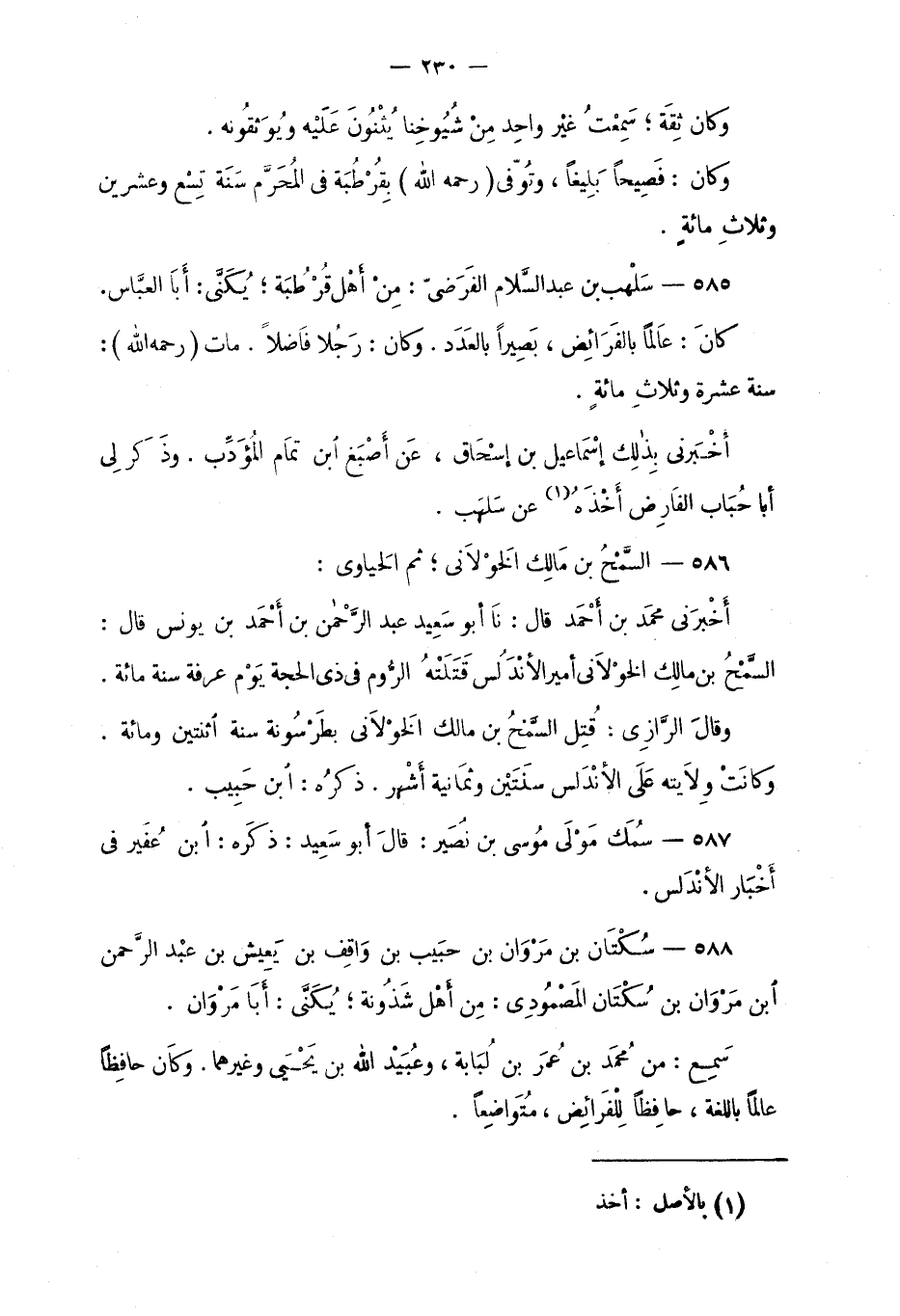 585 - سَلْهب بن عبد السّلام الفَرَضيّ: مِنْ أهل قُرْطُبة؛ يُكَنّى: أبا العبّاس.