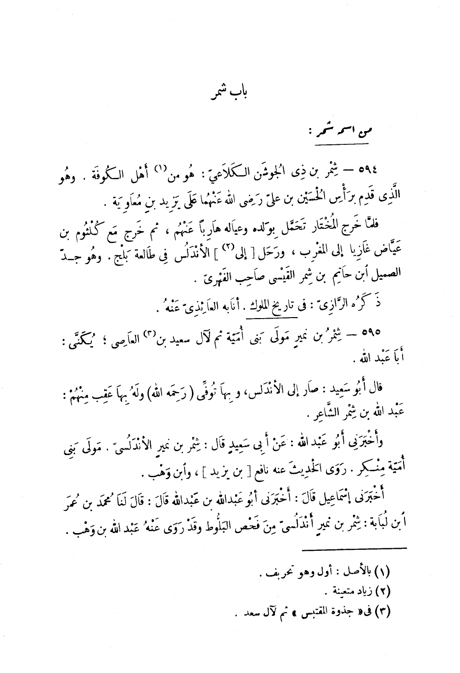 595 - شِمْرُ بن نميرٍ مَولى بَني أُميّة ثم لآل سعيد بن العاصِي؛ يُكَنّى: أبا عبْدَ الله.