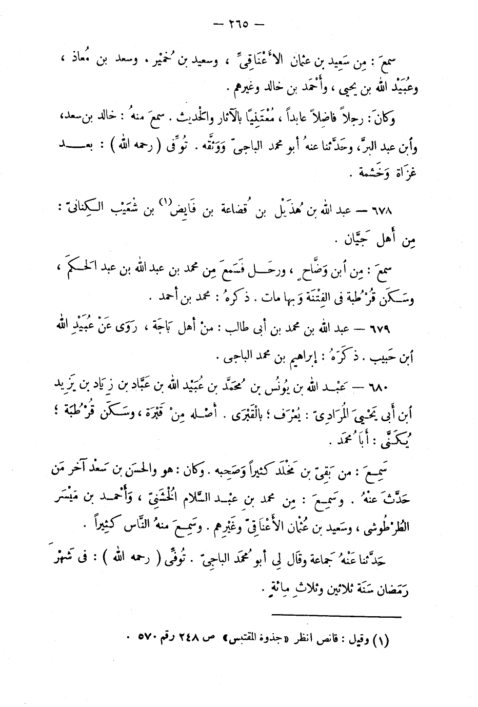 680 - عبد الله بن يُونُس بن مُحمد بن عُبيْد الله بن عبّاد بن زِياد بن يَزيد ابن أبي يَحيى المُرادِيّ: يُعرَف؛ بالقَبري. أصْله منْ قَبْرَة، وسَكن قُرطُبة؛ يُكنّى: أبا محمد.