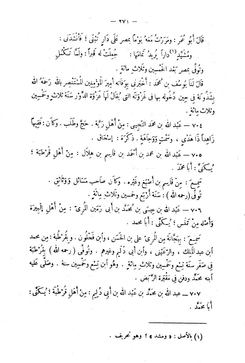 705 - عبد الله بن محمد بن أحْمد بن قاسِم بن هِلال: منْ أهْل قُرطُبة؛ يُكنّى: أبا محمد.