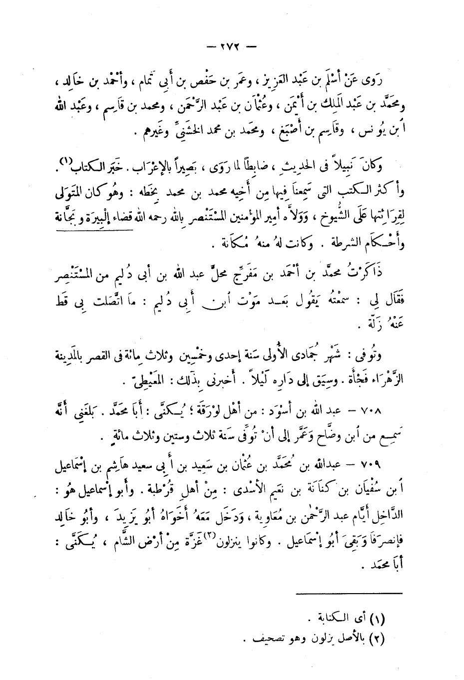 708 - عبد الله بن أسْوَد: من أهْل لوْرَقَة؛ يُكنّى: أبا محمد. بَلَغني أنّه سَمِع من ابن وضّاح وَعَمَّر إلى أنْ تُوفّي سنة ثلاث وستين وثلاث مائةٍ.