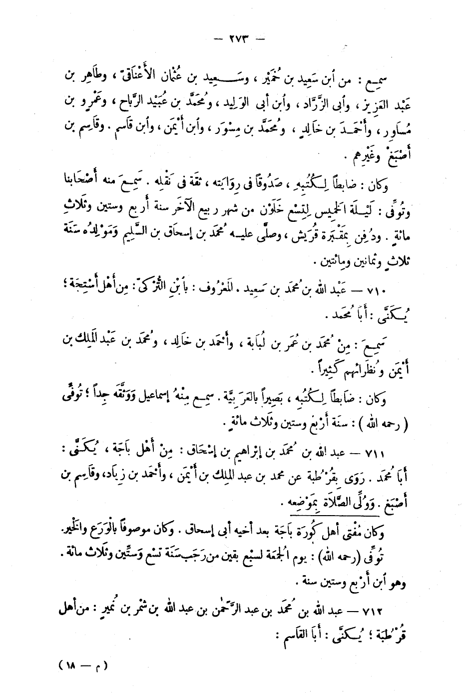 712 - عبد الله بن محمد بن عبد الرّحمن بن عبد الله بن شمْر بن نُميرٍ: من أهْل قُرطُبة؛ يُكنّى: أبا القاسم.