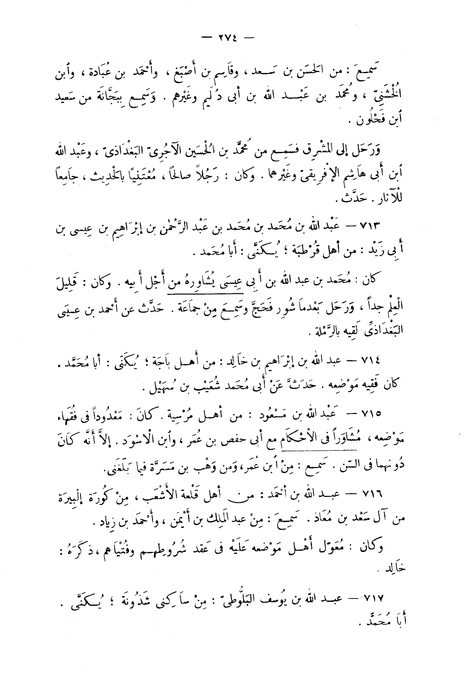 713 - عبد الله بن محمد بن محمد بن عبد الرّحمن بن إبْراهِيم بن عيسى بن أبي زَيْد: منْ أهْل قُرطُبة؛ يُكنّى: أبا محمد.