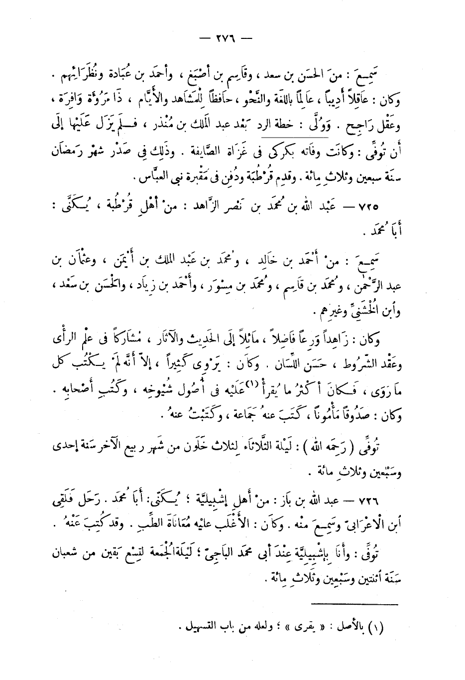 725 - عبد الله بن محمد بن نصر الزّاهد: من أهْل قُرطُبة، يُكنّى: أبا محمد.