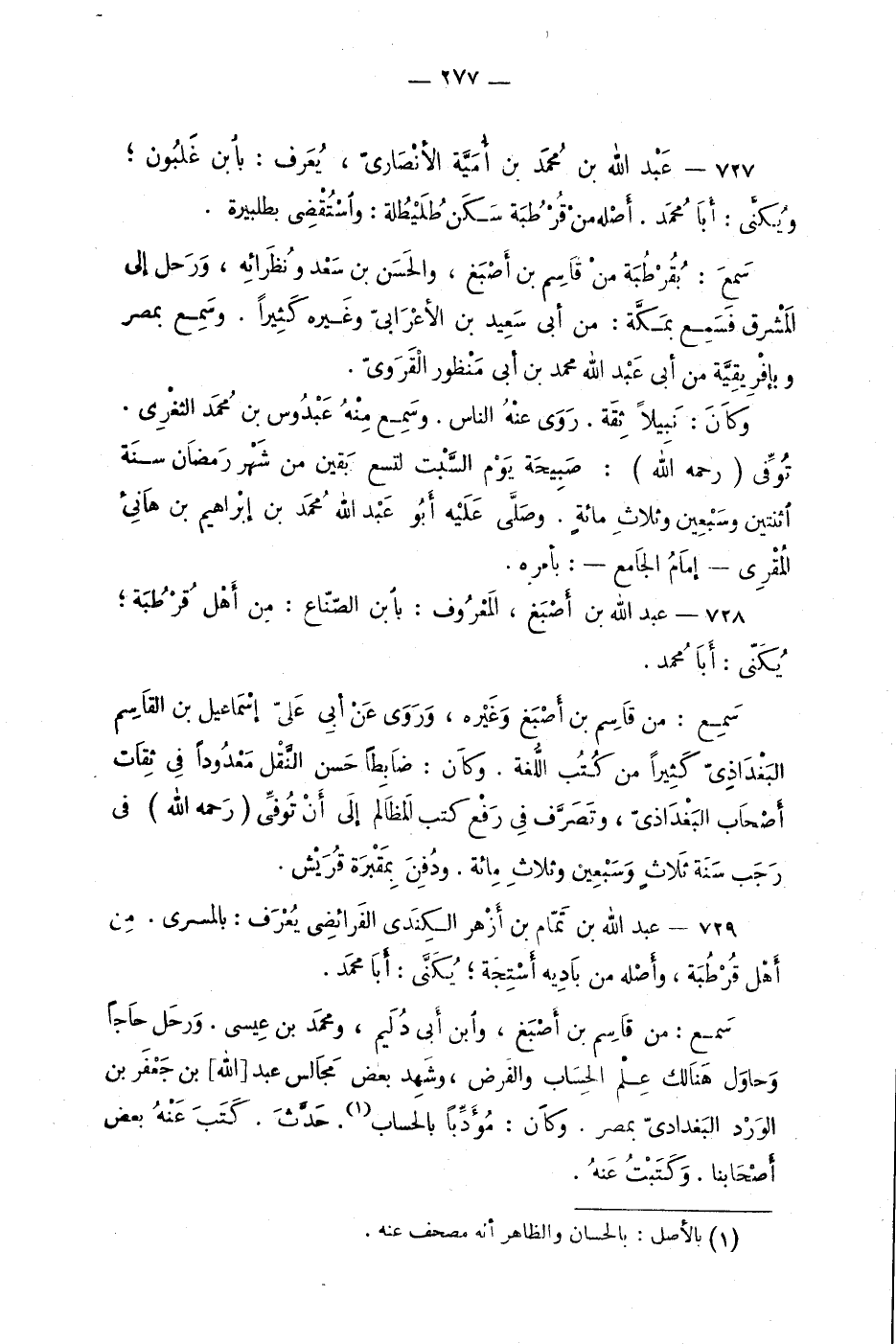 728 - عبد الله بن أصْبَغ، المَعروف: بابن الصّنّاع: منْ أهْل قُرْطُبة؛ يُكنّى: أبا مُحمد.