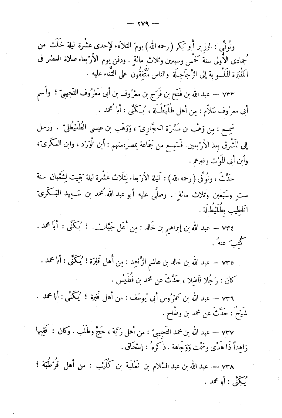 733 - عبد الله بن فتْح بن فَرَج بن معْرُوف بن أبي مَعْرُوف التّجيبيّ؛ واسم أبي معرُوف سلاّم: من أهْل طُليطَلة، يُكنّى: أبا محمد.