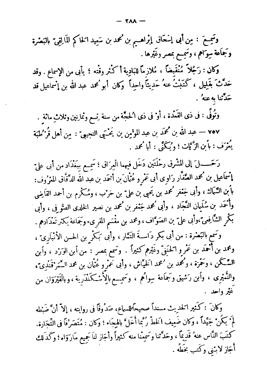 757 - عبد الله بن محمد بن عبد المؤمن بن يحيى التجيبيّ: مِن أهْل قُرطُبة يُعرَف: بابن الزّيّات، ويُكنّى: أبا محمد.
