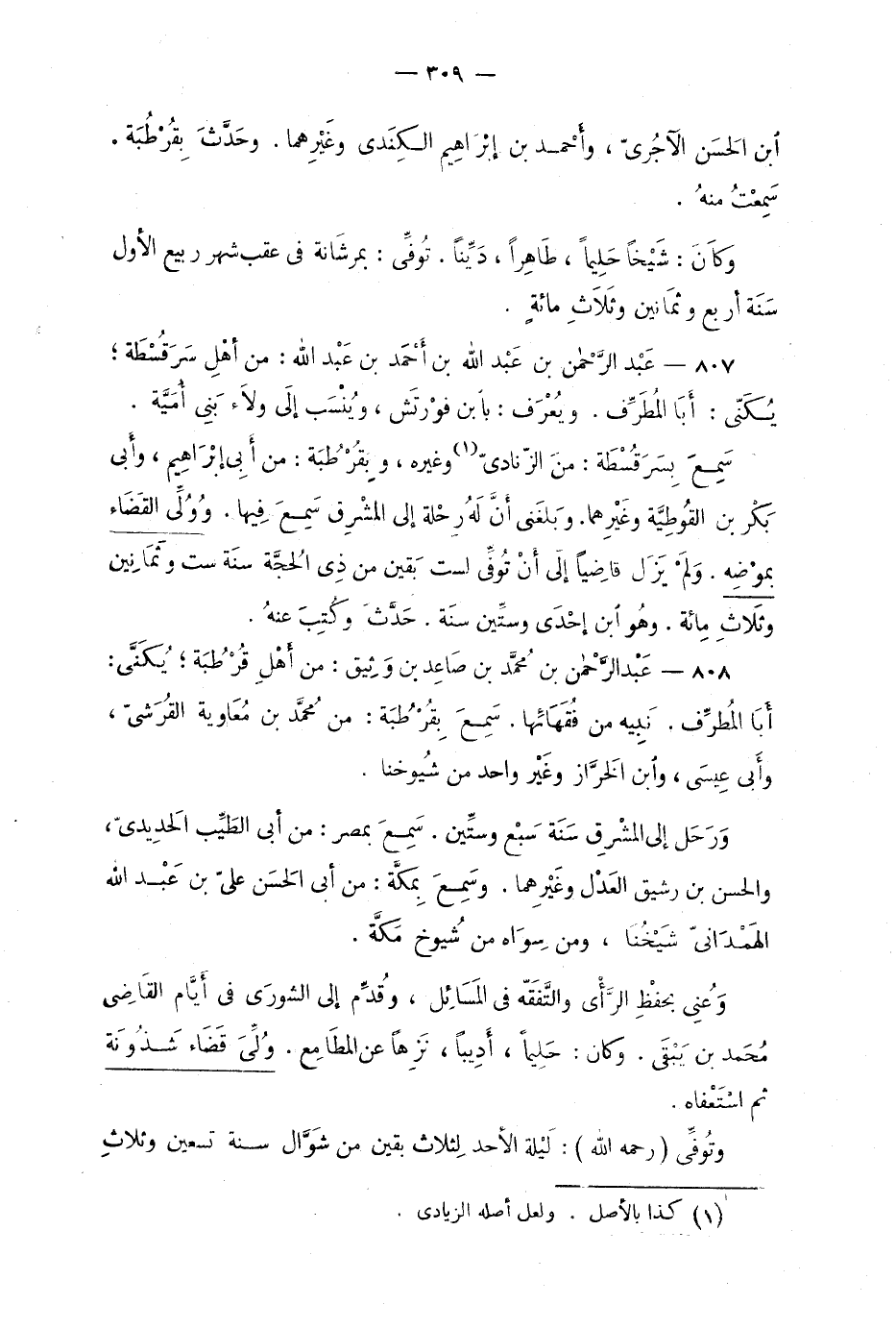 807 - عبد الرّحمن بن عبد الله بن أحمد بن عبد الله: من أهْلِ سَرَقُسْطة؛ يُكنّى: أبا المُطَرِّف. ويُعْرَف: بابن فوْرتَش، ويُنْسَب إلى ولاء بَني أُمَيّة.
