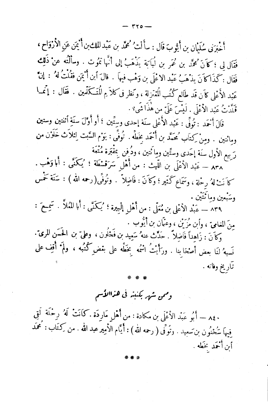 839 - عبد الأعلى بن مُعلّى: من أهل إلبيرَة؛ يُكنّى: عبد المعلاّ. سمعَ: من المضاميّ، وابن مُزيّن، وعُثمان بن أيّوب.