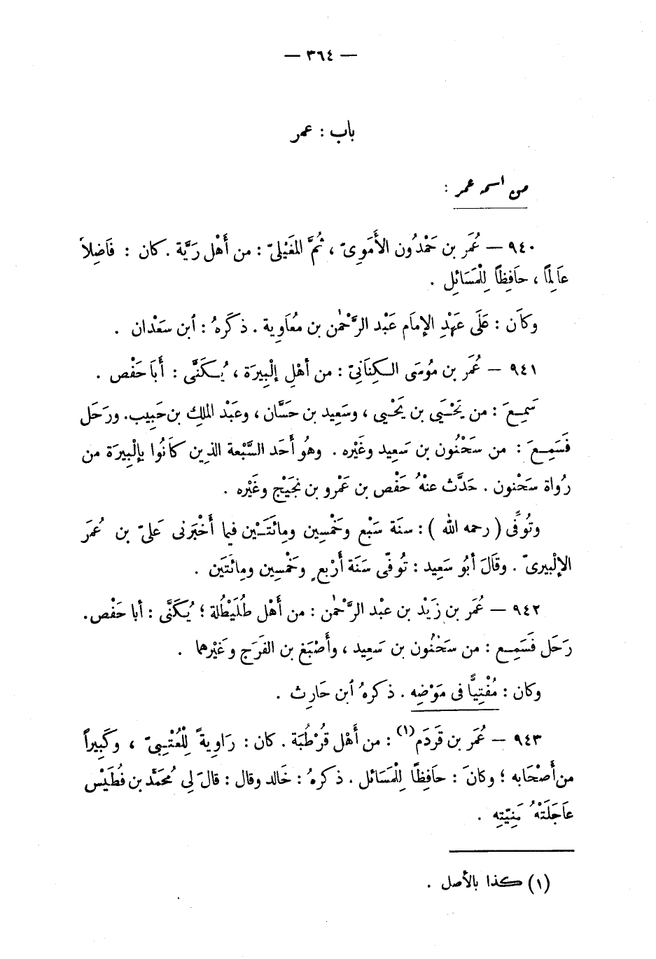 941 - عُمَر بن مُوسَى الكِنَانِيّ: من أَهْلِ إلبِيرَة، يُكَنَّى: أبَا حَفْص.