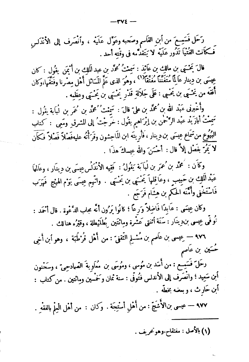 وكاَن: مُحَمَّد بن عُمَر بن لُبابَة يقُولُ: فَقِيه الأنْدَلُس عِيسى بن دِينَار، وعَالِمَها عَبْد المَلِك بن حَبِيبٍ، وعَاقِلها يَحْيى بن يَحْيَى. واتّهِم عِيسَى يَوْم الهيْج فَهَرَب فاسْتَخْفى وأَمَّنَه الحكم بن هِشَام فَرَجَع.