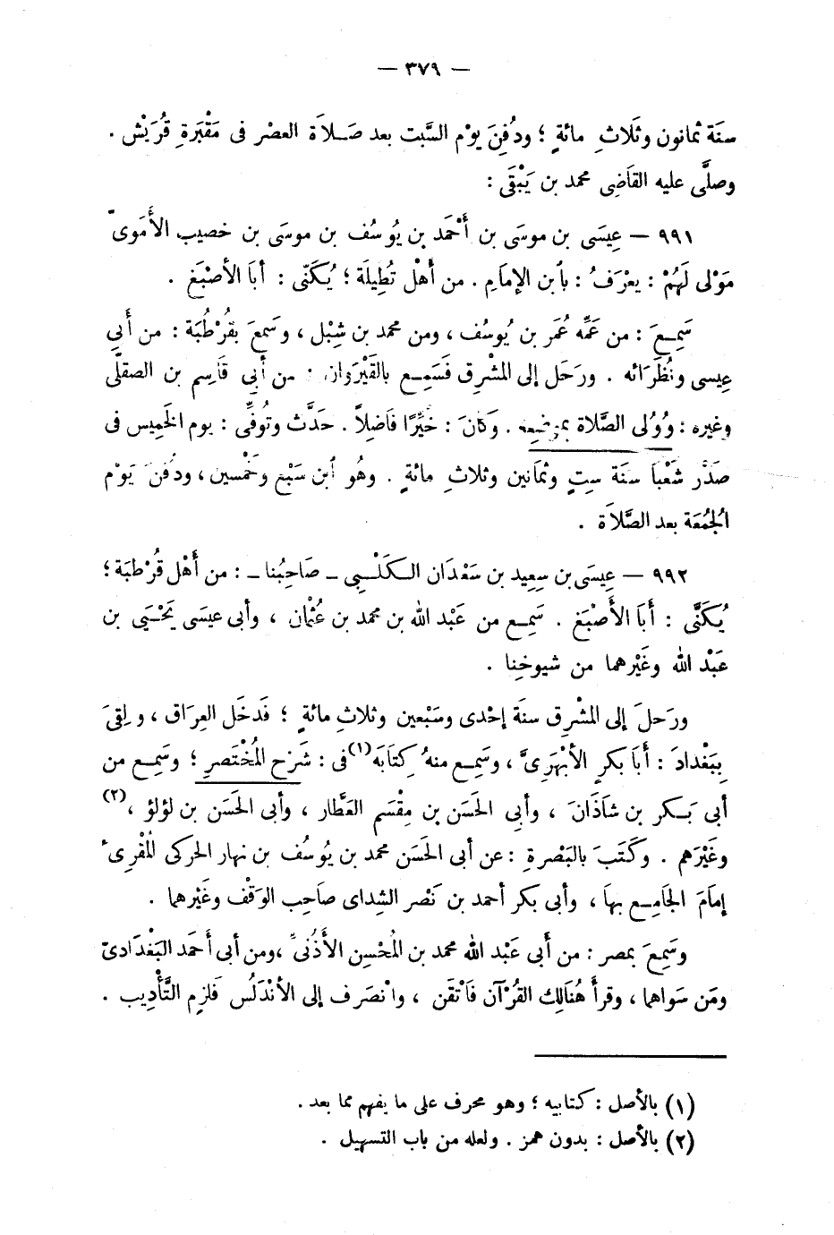 991 - عِيسى بن موسى بت أْحَمد بن يُوسُف بن موسَى بن خصيب الأَمَويّ مَ وْلى لَهُمْ: بابن الإمامِ. من أهْلِ تُطِيلَة؛ يُكَنَّى: أبا الأصْبَغ.