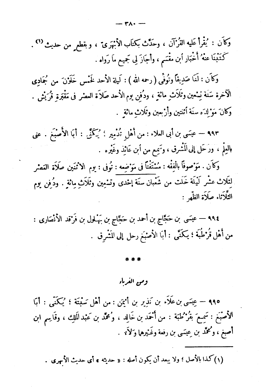 994 - عيسَى بن حَجَّاج بن أحمد بن حَجَّاج بن بَهْلول بن فَرْقد الأنْصَاري: من أَهْل قُرْطُبَة؛ يُكَنَّى: أبا الأصْبَغ رحل إلى المَشْرِق.