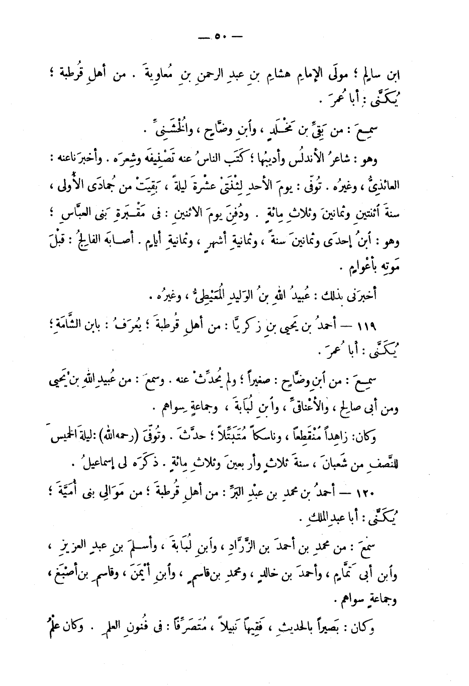 120 - أحمدُ بن محمدِ بن عبْدِ البَرِّ: من أهلِ قُرطبةَ؛ من مَوَالِي بني أُمَيَّةَ؛ يُكَنَّى: أبا عبدِ الملكِ.