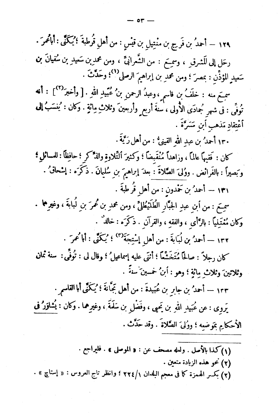 129 - أحمدُ بن فَرجِ بن منْتِيلِ بن قيْسٍ: من أهلِ قُرطبةَ؛ يُكَنَّى: أبا عُمرَ.