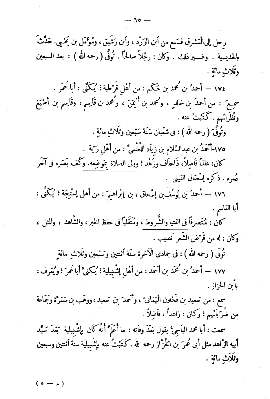 174 - أحمدُ بن مُحمد بن حَكَم: من أهْلِ قُرْطبة؛ يُكَنَّى: أبا عُمرَ.