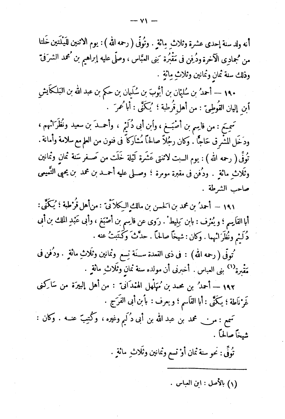 190 - أحمدُ بن سُليمان بن أيُّوبَ بن سُلَيمان بن حكم بن عبد الله بن البَلكَايشِ ابنِ إليان القُوطِيّ: من أهل قُرطبةَ؛ يُكَنَّى: أبا عُمر.