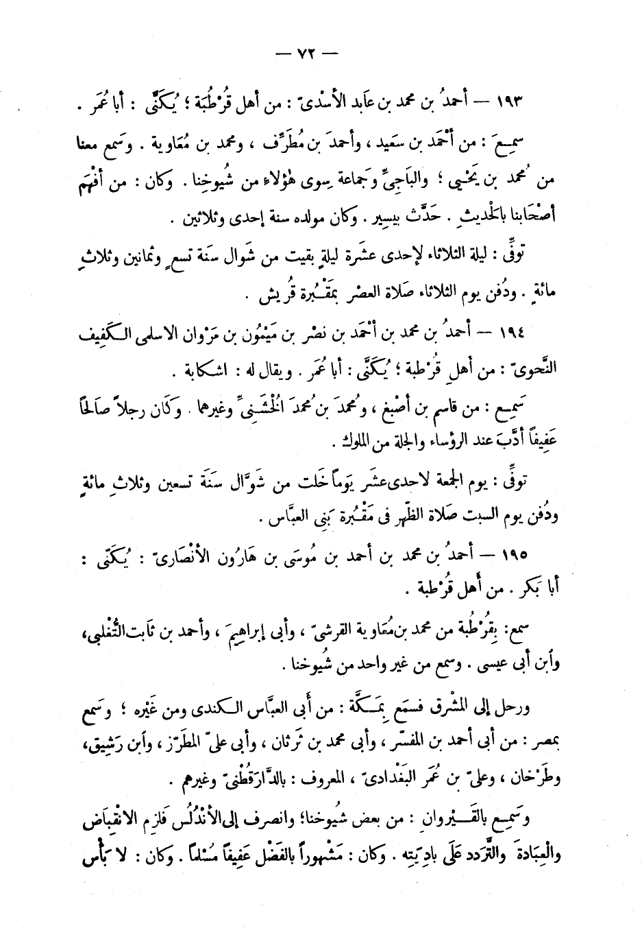 194 - أحمدُ بن محمد بن أحمد بن نصْر بن مَيمُون بن مَرْوان الاسلمي الكَفيف النَّحوي: من أهلِ قُرطبة؛ يُكَنَّى: أبا عُمَر. ويقال له: اشكابة.