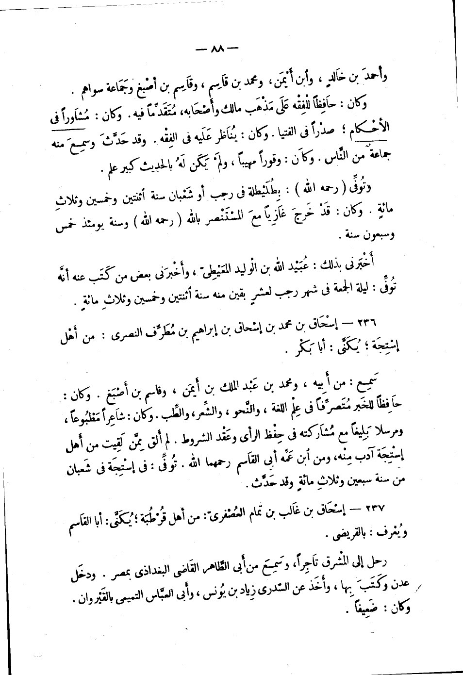 236 - إسْحَاق بن محمد بن إسحاق بن إبراهيم بن مُطَرِّف النصري: من أهل أستِجَة؛ يُكَنَّى: أبا بكر.