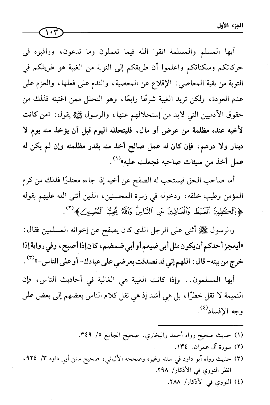 (¬3) حديث رواه أبو داود في سننه وغيره وصححه الألباني، صحيح سنن أبي داود 3/ 924، انظر النووي في الأذكار/ 298.