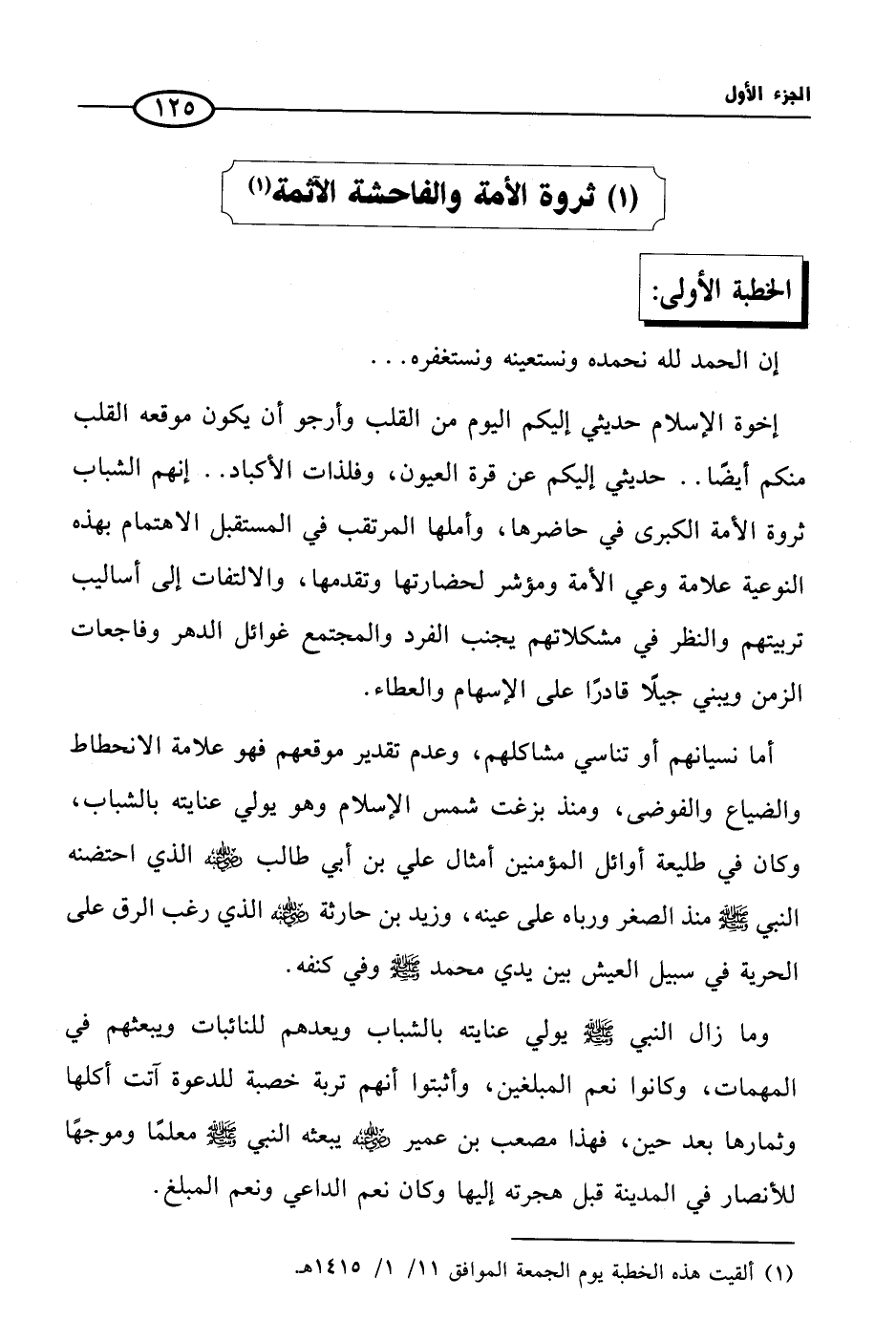 (¬1) ألقيت هذه الخطبة يوم الجمعة الموافق 11/ 1/ 1415 هـ.