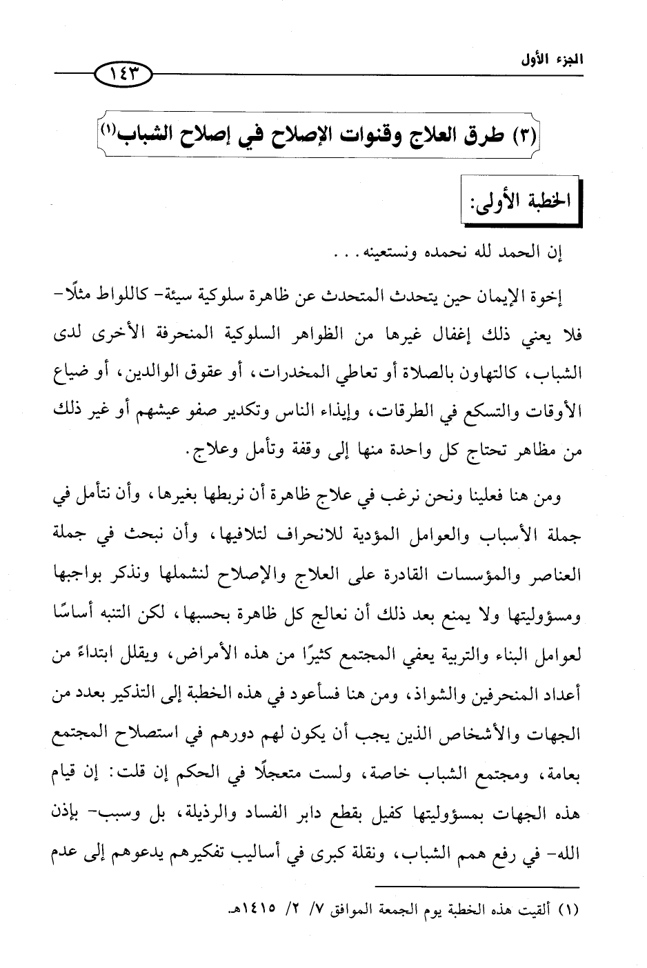 (¬1) ألقيت هذه الخطبة يوم الجمعة الموافق 7/ 2/ 1415 هـ.