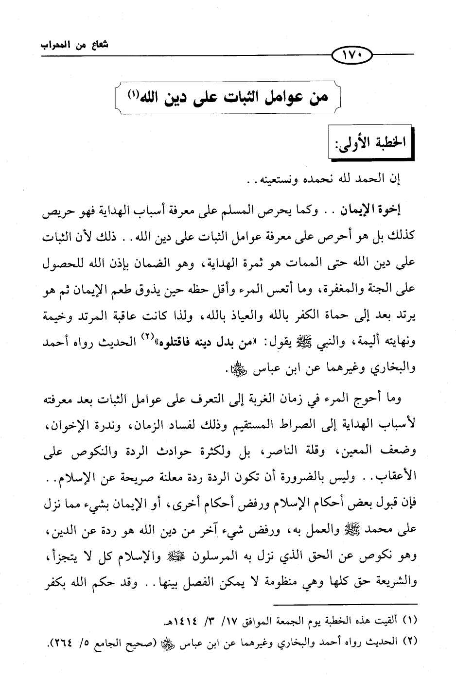 (¬1) ألقيت هذه الخطبة يوم الجمعة الموافق 17/ 3/ 1414 هـ.