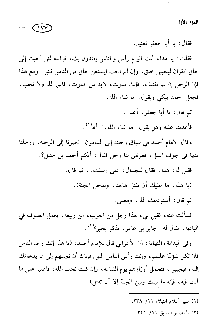 وفي البداية والنهاية: أن الأعرابي قال للإمام أحمد: