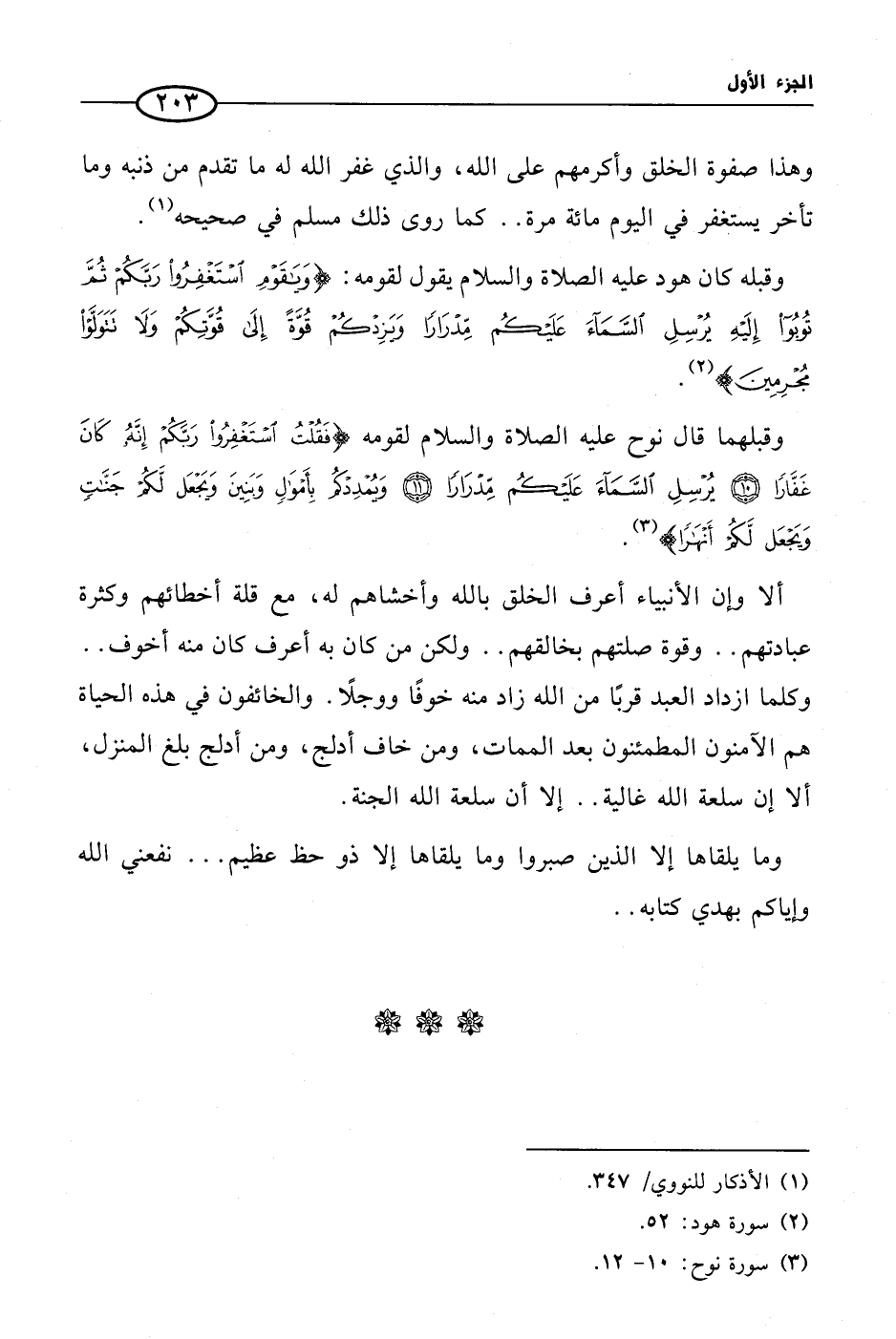 وهذا صفوة الخلق وأكرمهم على الله، والذي غفر الله له ما تقدم من ذنبه وما تأخر يستغفر في اليوم مائة مرة .. كما روى ذلك مسلم في صحيحه (¬1).