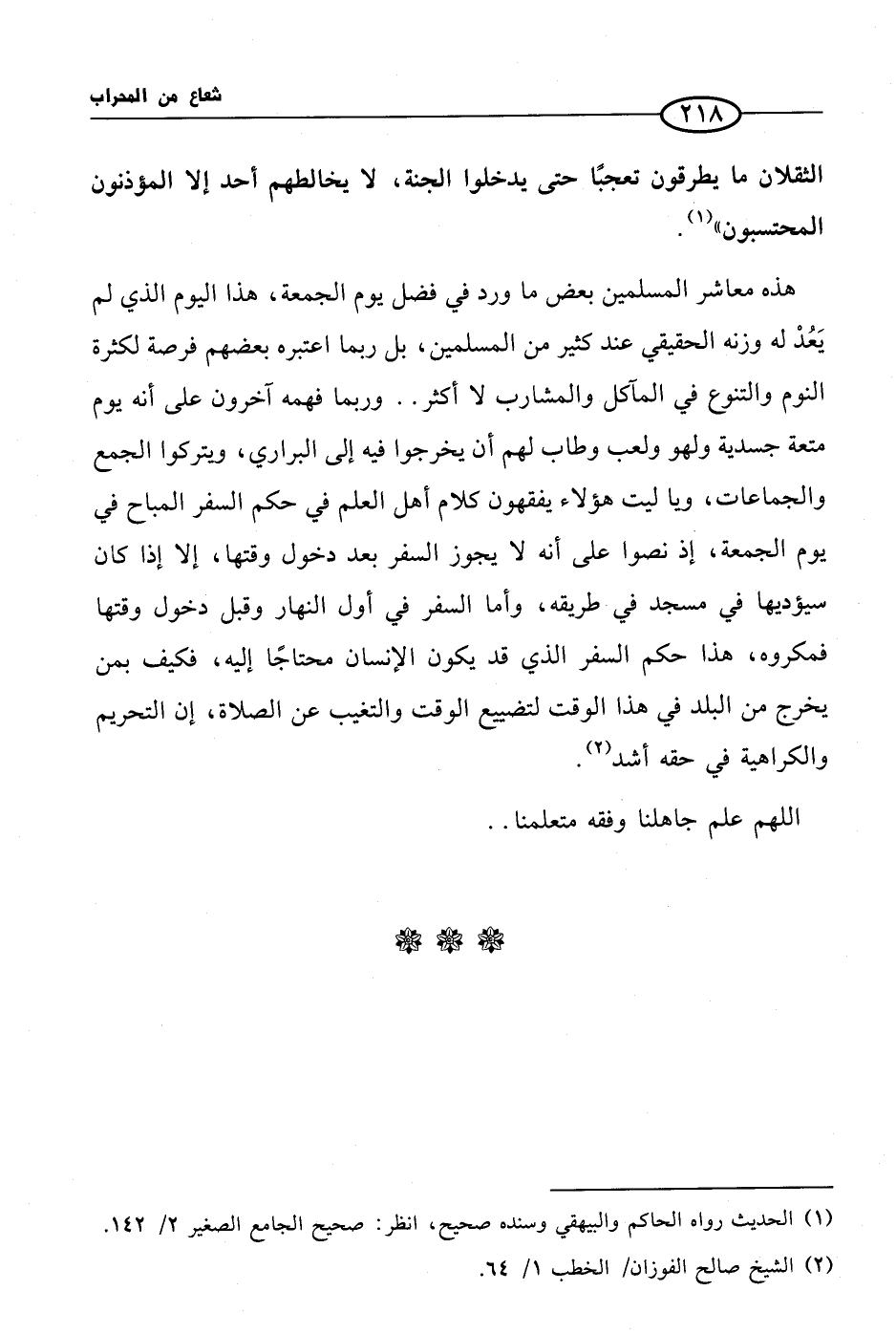 (¬2) الشيخ صالح الفوزان/ الخطب 1/ 64.