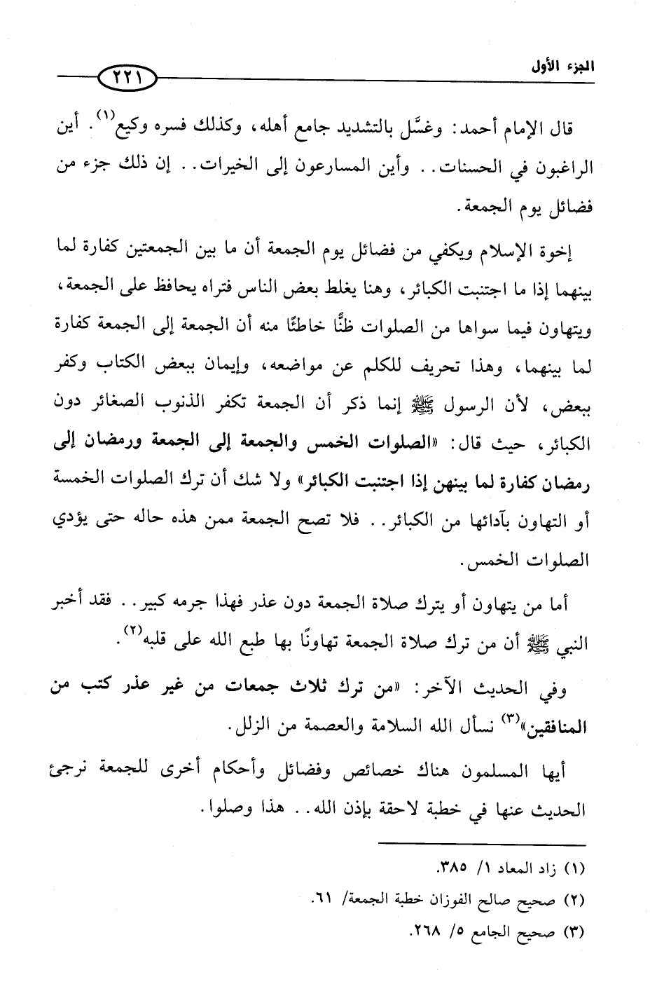 وفي الحديث الآخر: «من ترك ثلاث جمعات من غير عذر كتب من المنافقين» (¬3) نسأل الله السلامة والعصمة من الزلل.