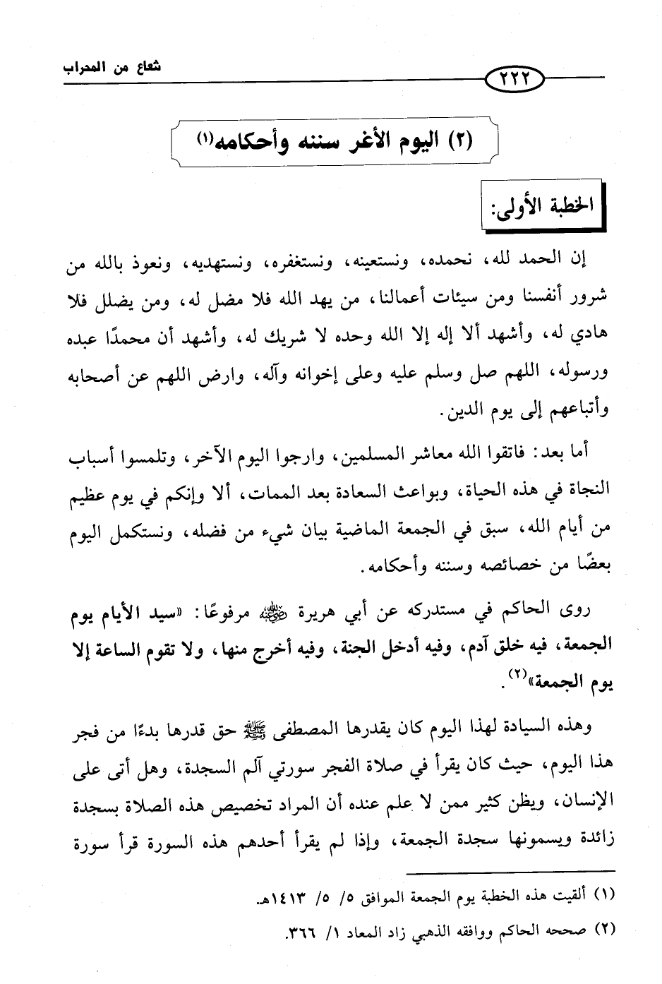 (2) اليوم الأغر سننه وأحكامه (¬1)