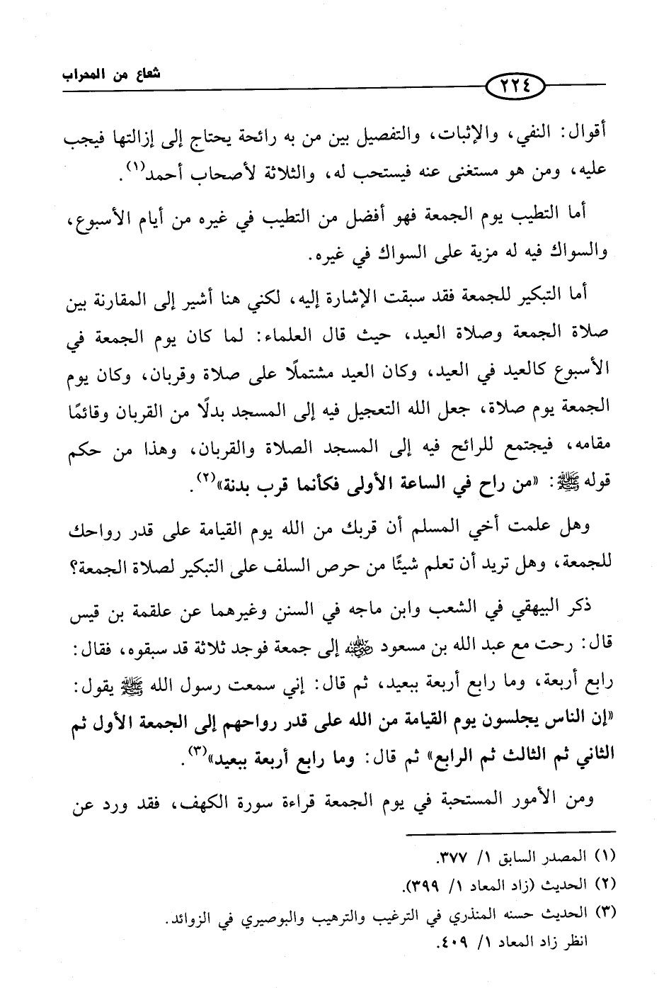 (¬2) الحديث (زاد المعاد 1/ 399).