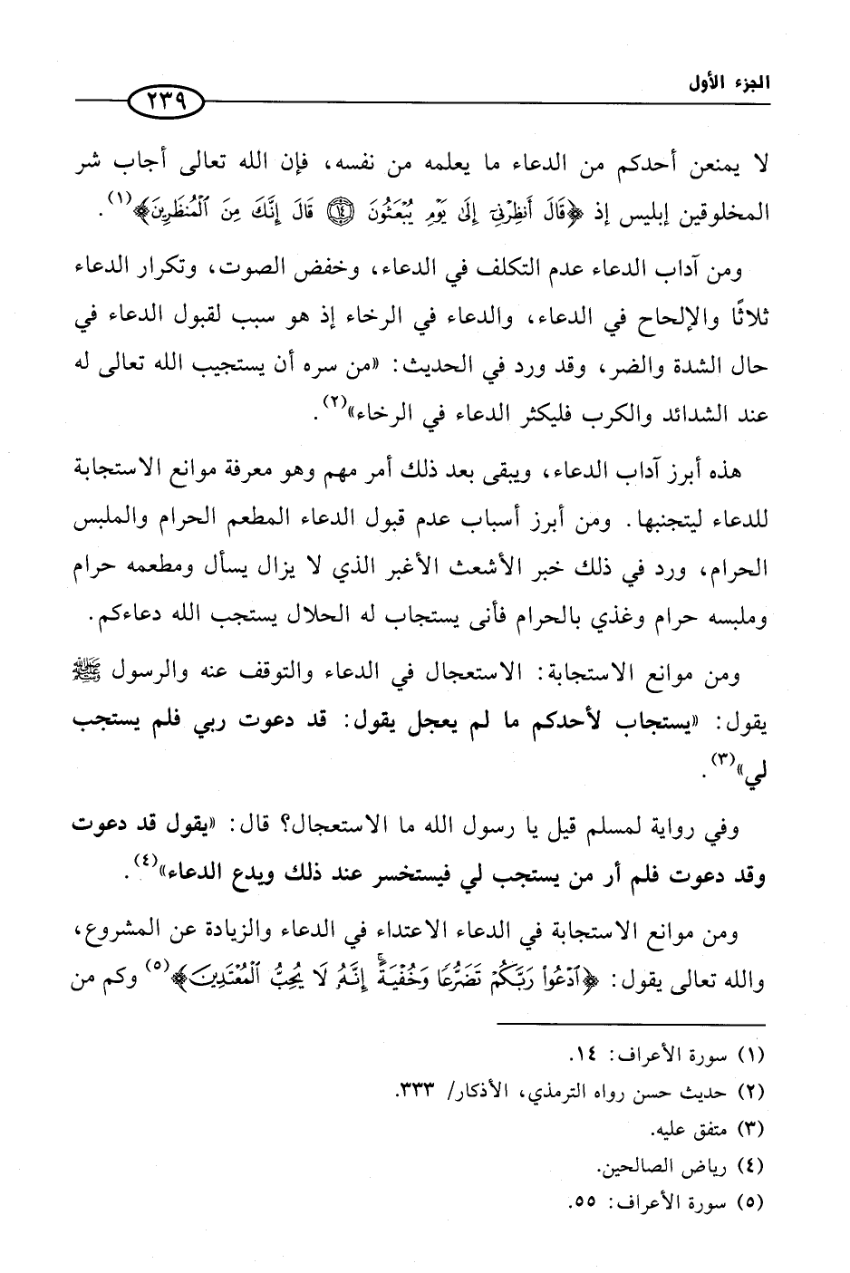 ومن موانع الاستجابة في الدعاء الاعتداء في الدعاء والزيادة عن المشروع، والله تعالى يقول: {دعوا ربهم تضرعًا وخفية إنه لا يحب المعتدين} (¬5) وكم من