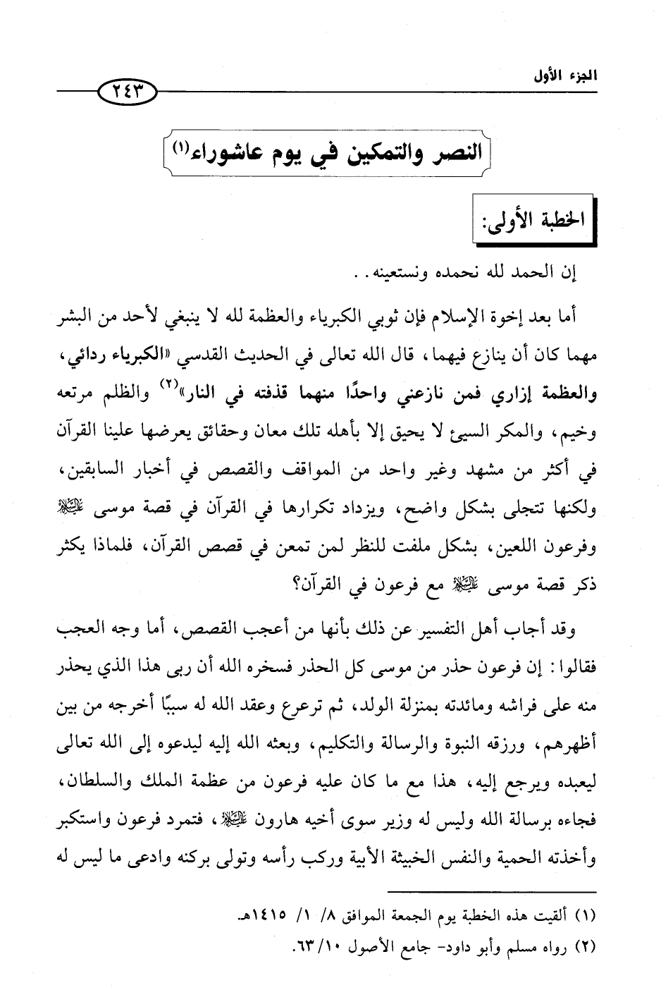 (¬1) ألقيت هذه الخطبة يوم الجمعة الموافق 8/ 1/ 1415 هـ.