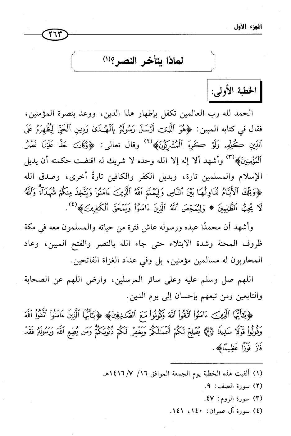 (¬1) ألقيت هذه الخطبة يوم الجمعة الموافق 16/ 7/ 1416 هـ.