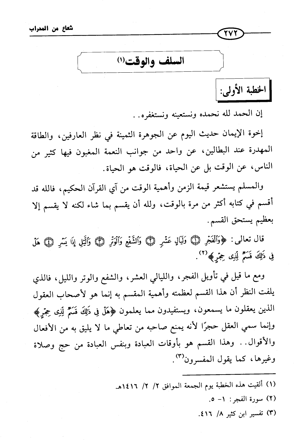 (¬1) ألقيت هذه الخطبة يوم الجمعة الموافق 2/ 2/ 1416 هـ.