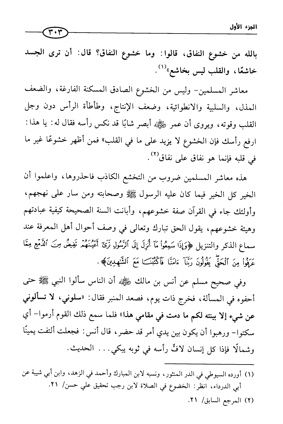 (¬1) أورده السيوطي في الدر المنثور، ونسبه لابن المبارك وأحمد في الزهد، وابن أبي شيبة عن أبي الدرداء، انظر: الخضوع في الصلاة لابن رجب تحقيق علي حسن/ 21.