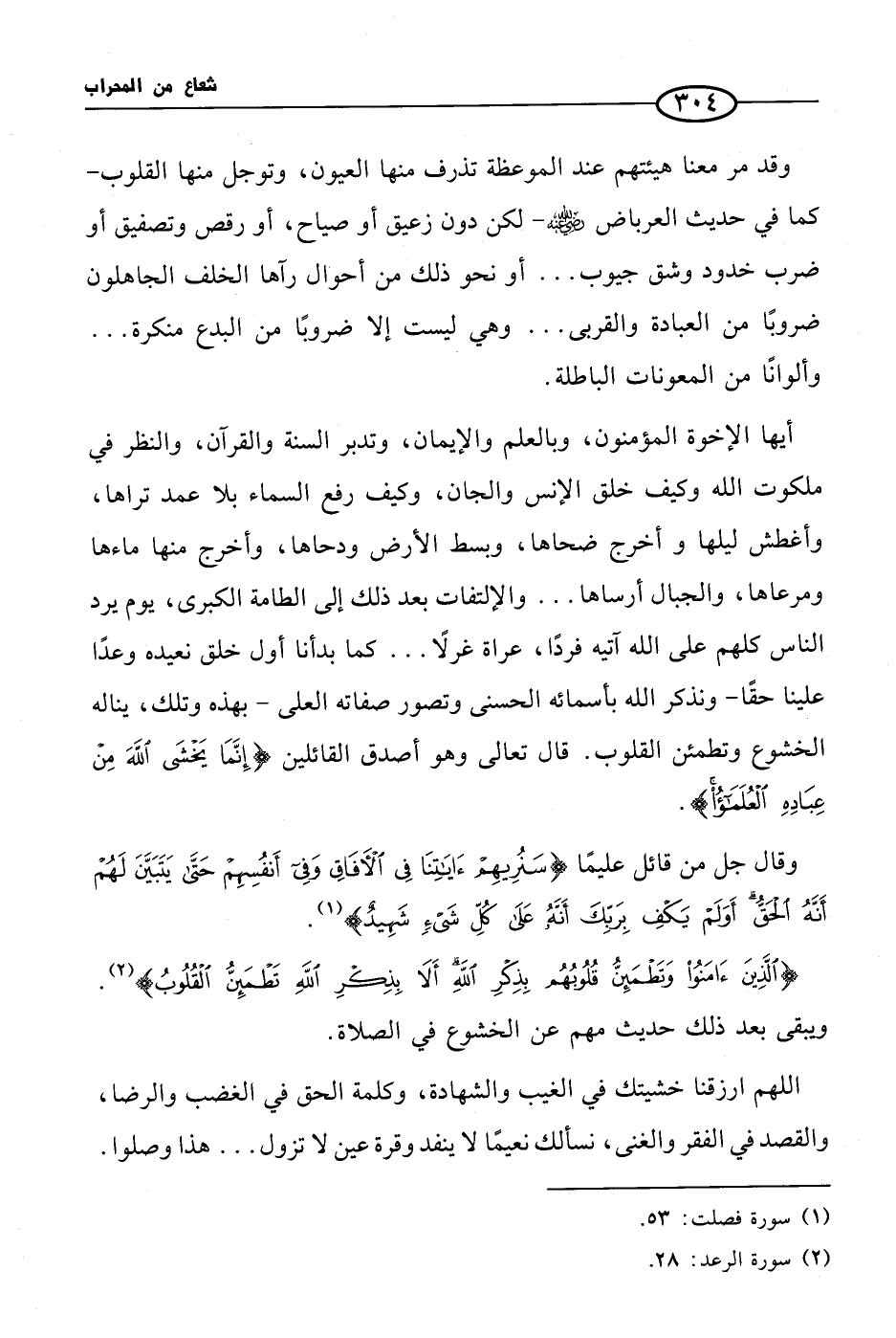 {الذي آمنوا وتطمئن قلوبهم بذكر الله ألا بذكر الله تطمئن القلوب} (¬2). ويبقى بعد ذلك حديث مهم عن الخشوع في الصلاة.