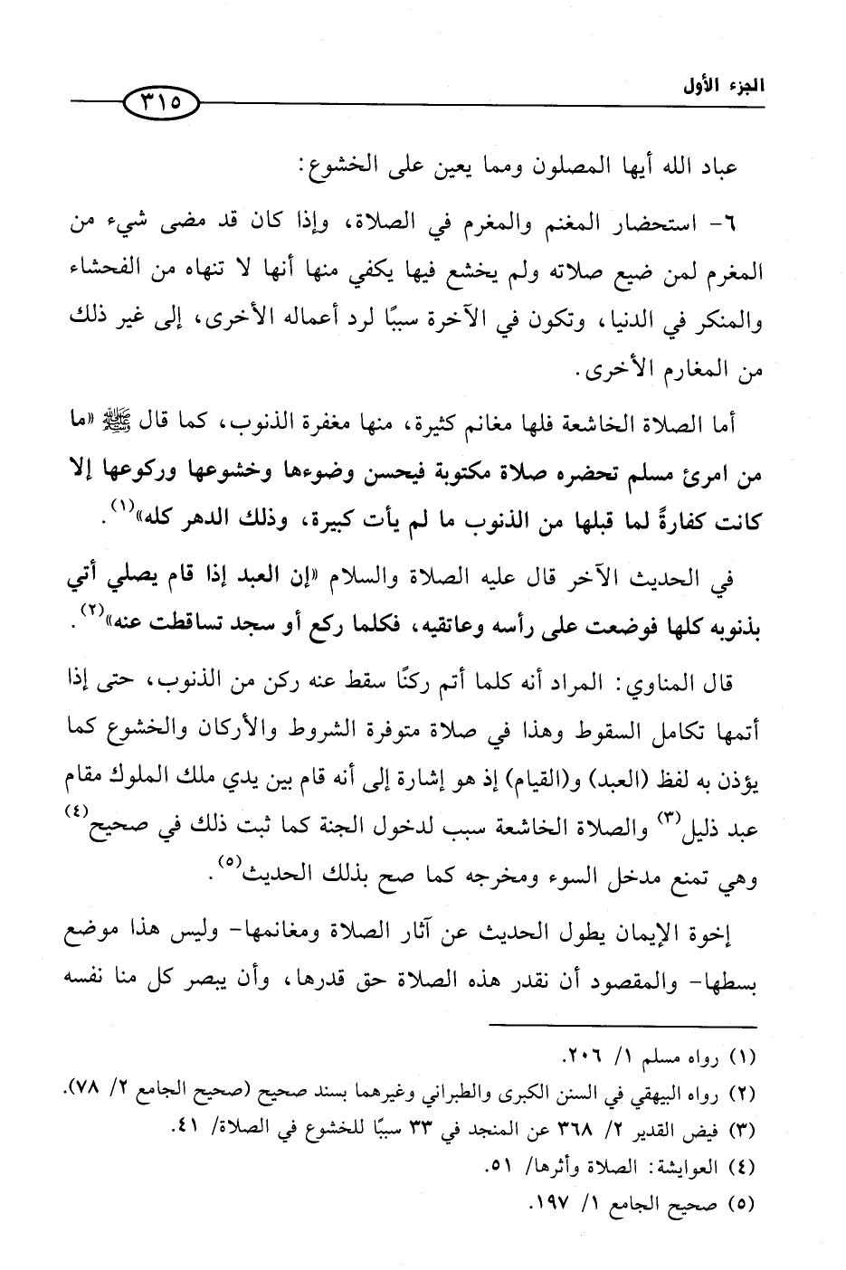 (¬3) فيض القدير 2/ 368 عن المنجد في 33 سببًا للخشوع في الصلاة / 41.