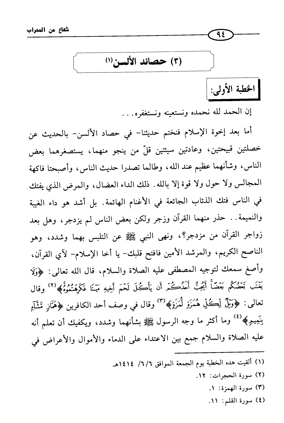 (3) حصائد الألسن (¬1)