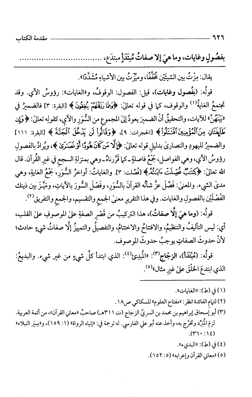 بفصول وغايات، وما هي إلا صفات مبتدأ مبتدع،